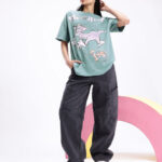Add a dose of fun and nostalgia to your casual look with this Tom & Jerry Printed Drop-Shoulder Sleeves Oversized T-shirt for women. Featuring a cheerful Tom & Jerry humour and comic print on the chest, this blue and pink tee is all about comfort and playful charm. The oversized fit and drop-shoulder sleeves lend it a trendy, relaxed silhouette, while the soft knitted cotton fabric ensures day-long ease and breathability. Perfect for laid-back days, coffee runs, or lounging in style!