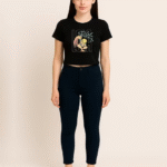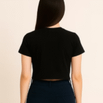 Crafted from soft, stretchable Lycra, it offers a breathable feel and relaxed boxy silhouette—perfect for everyday wear. The short sleeves and cropped length add a trendy touch, making it easy to pair with high-waisted jeans, skirts, or joggers.