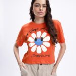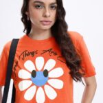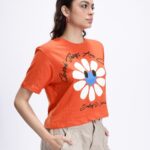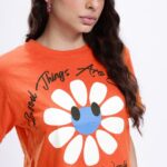 Brighten up your casual wardrobe with this bold and stylish Orange Graphic Print T-Shirt for women. Designed for comfort and personality, it features a full-front graphic print that adds a modern, expressive edge to your everyday look.