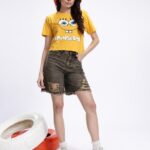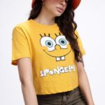 Bring a splash of fun and nostalgia to your wardrobe with this Yellow & White SpongeBob Graphic Print T-Shirt. Featuring a bold full-front SpongeBob graphic, this tee is perfect for fans who love quirky, character-inspired fashion.